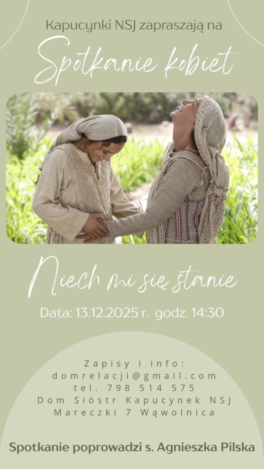- Siostry Kapucynki zapraszają na spotkanie dla Kobiet w sobotę 13 grudnia od godz. 14.30 w Domu Sióstr.